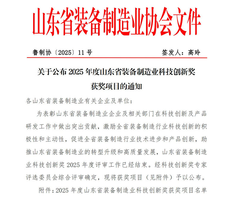 11 ноября Ассоциация производителей оборудования провинции Шаньдун опубликовала список наград провинции Шаньдун за научно - технические инновации в производстве оборудования в 2025 году. Shandong Zhongjie Special Equipment Co., Ltd. с проектом « Глубокохолодный контейнер PAW - GTAW композитного сварочного деформационного усиления ключевых технических исследований и индустриализации», среди многих выдающихся достижений выделяется первый приз, полностью демонстрирует техническую силу компании в области специального оборудования и лидирующую позицию в отрасли.
