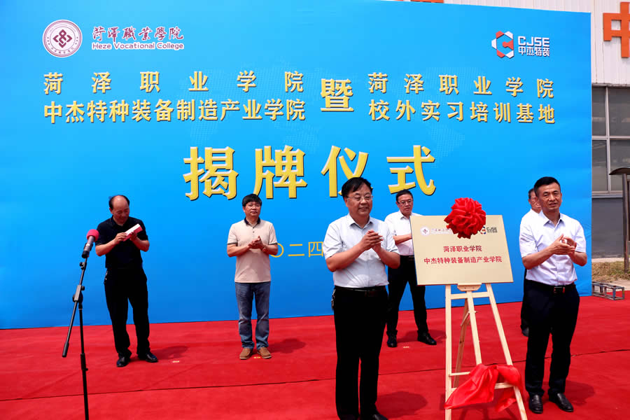 Впоследствии, среди внимания и ожиданий всех участников, « Институт промышленности по производству специального оборудования Чжунцзе в Профессиональном институте Хезе» и « Учебная база для стажировки вне кампуса Профессионального колледжа Хезе» были официально объявлены, что знаменует собой новый шаг в сотрудничестве между Профессиональным колледжем Хезе и Шаньдунской компанией специального оборудования Чжунцзе и открывает новую эру интеграции производства и образования и совместного обучения людей.